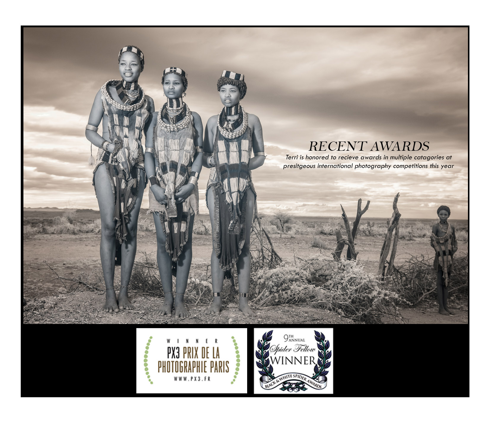 Terri’s images from her series from the Omo Valley, Ethiopia were selected from thousands in entries from 73 countries at the Spider Awards and from 85 countries at PX3.